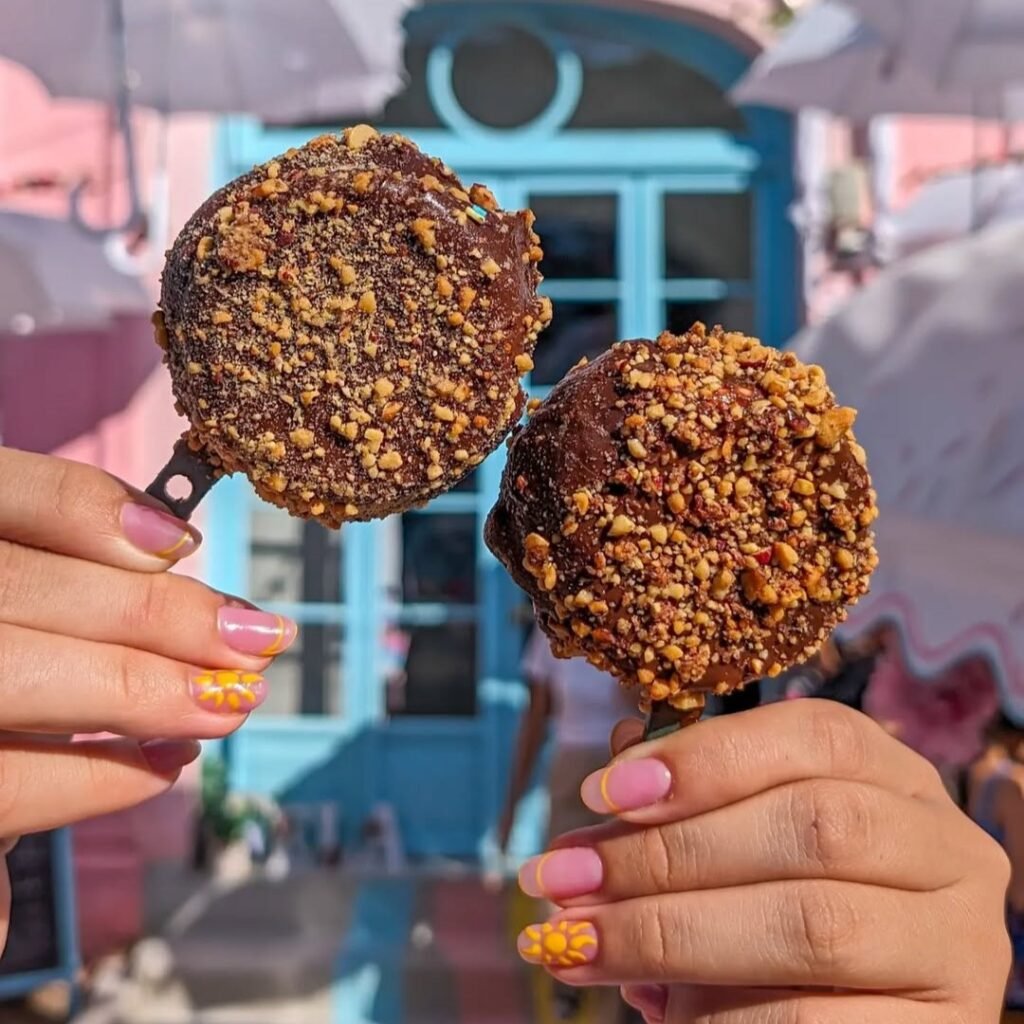 En nuestra heladería nos hemos propuesto desarrollar una línea de producción que eleve esta sensación gustosa de unir chocolate con helado y nos permita a todes disfrutar de ella con placer y sin culpas. De esa intención nacen nuestras ya famosas choco-ofertas integradas por las clásicas chocolletas o chocopaletas, los disruptivos pirulís, los tacos helados, los conos sorpresas y otras ofertas estacionales que han adornado nuestras neveras y deleitado a muchos de nuestros clientes.